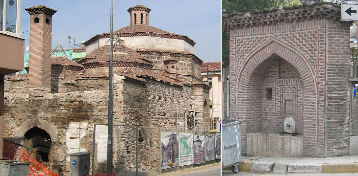 (left) Muradiye Hammam (under restoration); (right) Muradiye Cesme (the only remaining original fountain)