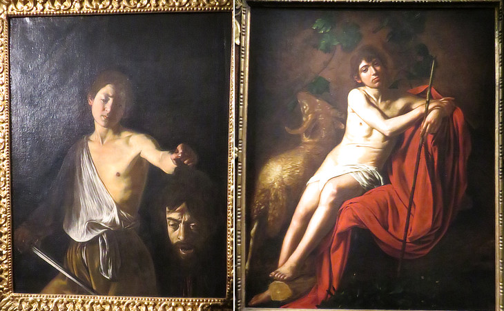 Two among the last paintings by Caravaggio in the Borghese Collection: (left) David and Goliath; (right) St. John the Baptist or the Good Shepherd
