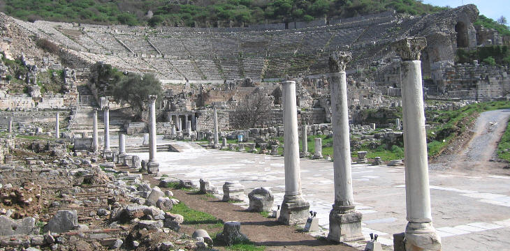 The theatre of Ephesus could accommodate an audience of 25,000 and it was located with a very scenographic effect at the end