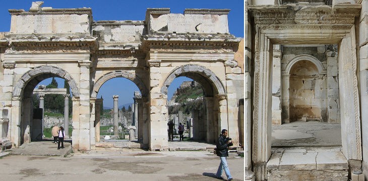 The first ancient monument visitors see when they approach (on foot) the archaeological site of Ephesus is the arch which was the main entrance to a stadium built during the reign of Emperor Nero. It is almost in the same condition as it was in the early XIXth century.