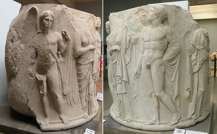 British Museum: relief on the base of a column (IVth century BC) which was found on the site of the Artemision by John Turtle Wood