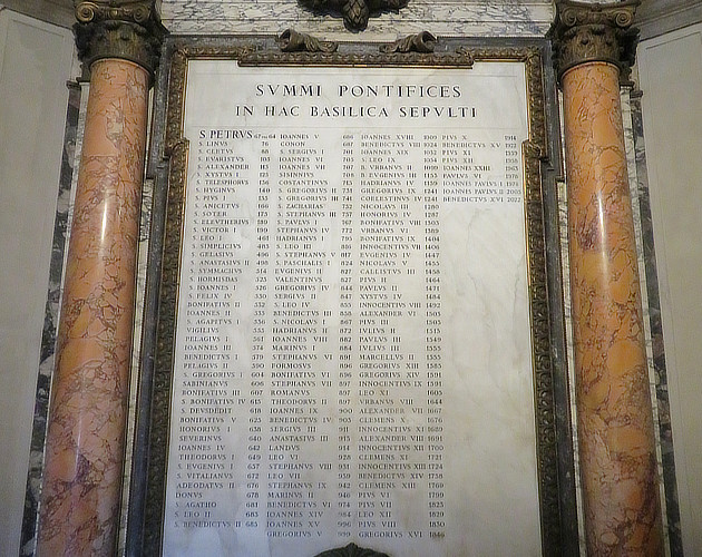 Vestibule of the passage leading to the sacristy: list of the Popes who are buried in S. Pietro