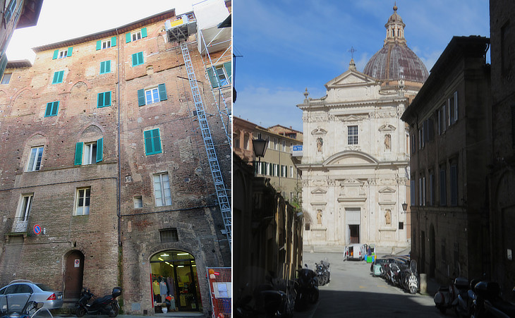 (left) Medieval houses in Via Bandini; (right) S. Maria di Provenzano seen from Via Bandini