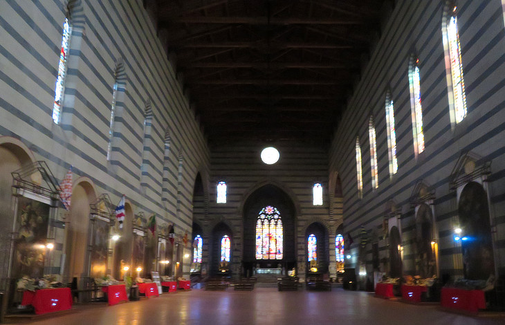 The design of S. Francesco is not typical of Italy where three-aisled churches are more common. They feature a central nave with a higher roof which allows for the opening of large windows whereas the interior of S. Francesco is too dark.