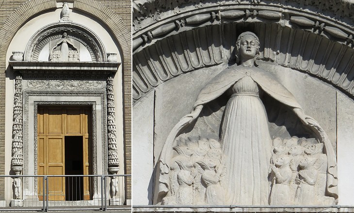 (left) Portal of the old church of S. Maria della Misericordia; (right) Madonna della Misericordia (1475)