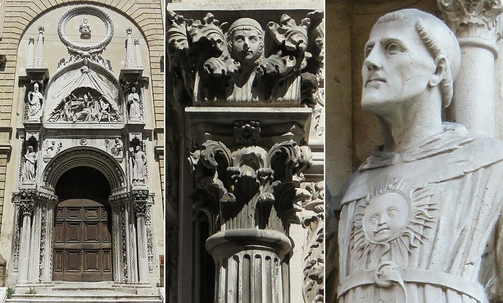 (left) Details of the portal of S. Maria della Misericordia; (centre/right) S. Francesco alle Scale: details of the convent portal