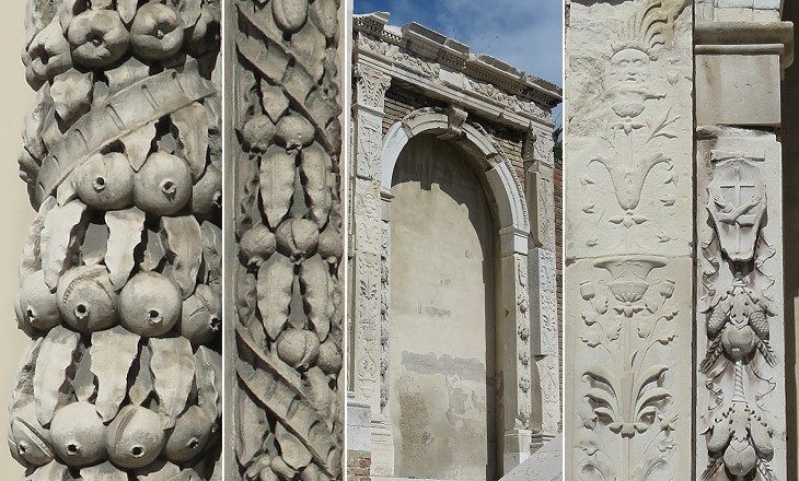 Giorgio Orsini mainly used leaf motifs to decorate his buildings, but towards the end of the XVth century other patterns prevailed. Fruits were believed to have a more symbolic religious content, in particular pomegranates, symbols of suffering and resurrection.