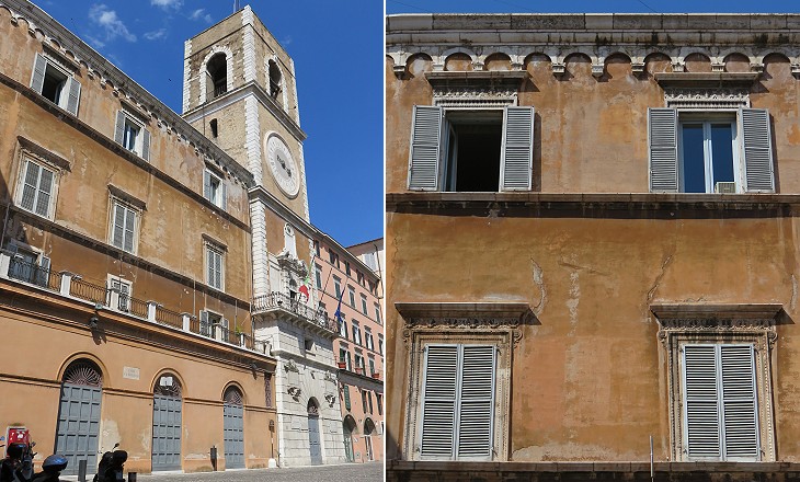 Palazzo Benincasa (left/centre) and detail of a window in the same street (right)