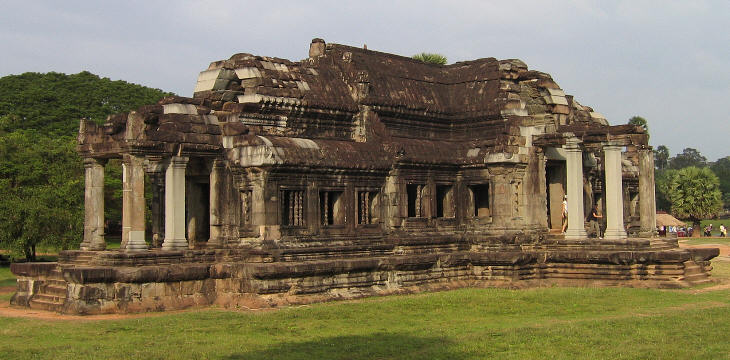 The two "libraries" of Angkor Vat have a design which is somewhat similar to patterns developed in ancient Greece with pronaoi (porticoes at the front of temples) and a more balanced ratio between height and width.