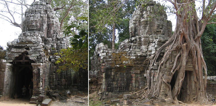 A gigantic fig-tree chose to grow over the entrance of a gopura which was decorated with the benign face of Avalokitesvara, (the Lord who looks down with compassion), which was both a Buddhist religious symbol and a portrait of the king.