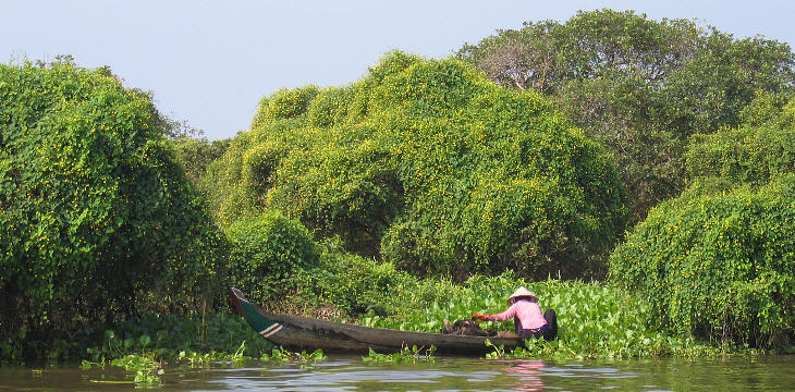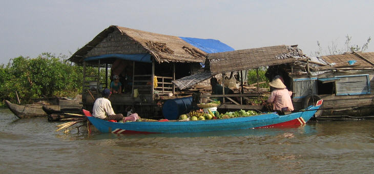 Tonle Sap (the Great Lake) is a sort of safety valve of the Mekong River hydrogeological system: during the rainy season it receives water from the Mekong which flows back to the river during the dry season: its shallow waters are a gigantic fishery which provides Cambodians with a significant part of their protein intake.