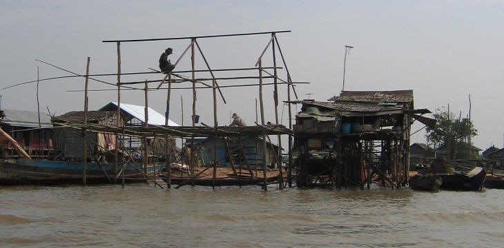 Cambodian traditional houses, both on land and on water, are built on poles; they are not regarded as a lifetime investment because almost every second year they need to be rebuilt.