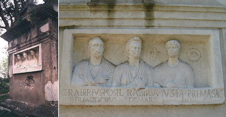 The oldest monuments had a simple stone decoration; the majority of them were replaced by more elaborate ones. That shown above calls to mind the sarcophagus of Lucius Cornelius Scipio Barbatus and another monument near Porta Maggiore.