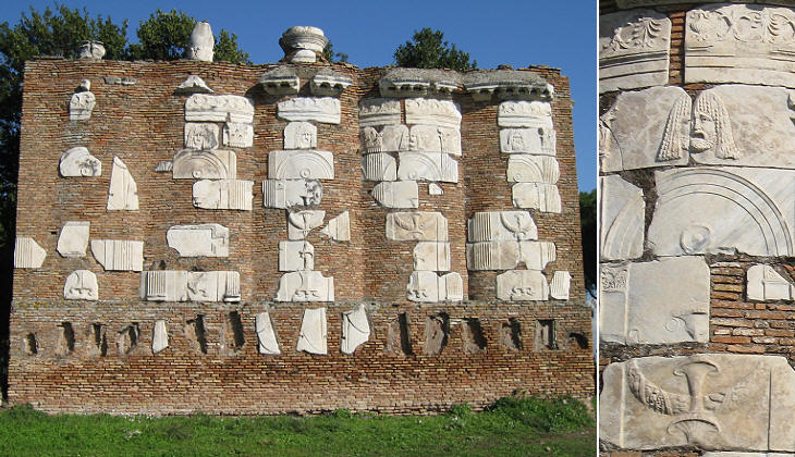 The reliefs portraying funerary busts (which in some instances were placed inside a clipeus, a niche resembling a round shield) were sometimes used to decorate churches (e.g. at Trieste and Benevento) and houses (e.g. that of Lorenzo Manilio in Rome).