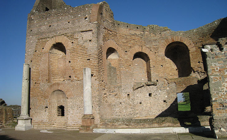 During the Ist century AD the manufacturing of fired bricks underwent a technological advancement; bricks were produced in different shapes and colours; in the following century bricks were no longer used just for the structure of a building, but to decorate it with pillars, capitals and different shades of red (the so called Tempio della Salute, a mile from Via Appia Antica is another fine example of a brick monument, as well as Sepolcro di Annia Regilla in Valle della Caffarella and the Barberini tomb along Via Latina).