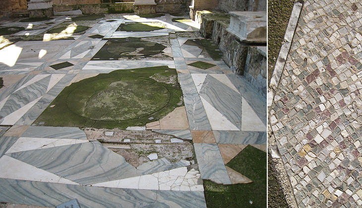 (left) Exedra (semicircular square); (right) marble inlay floor