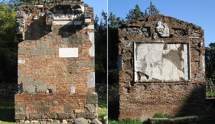 Reconstructed monuments to: (left) M. Servilius Quartus; (right) to the children of Sextus Pompeus Justus (consul in 14 AD and a distant relative of Pompey)