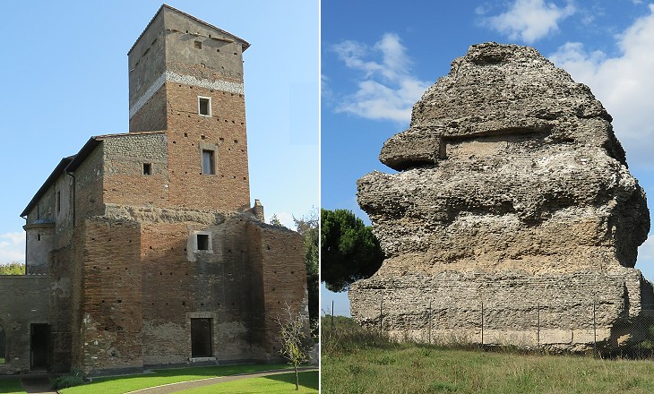 (left) Torre del Casale di S. Maria Nuova; (right) "Pyramidal tomb"