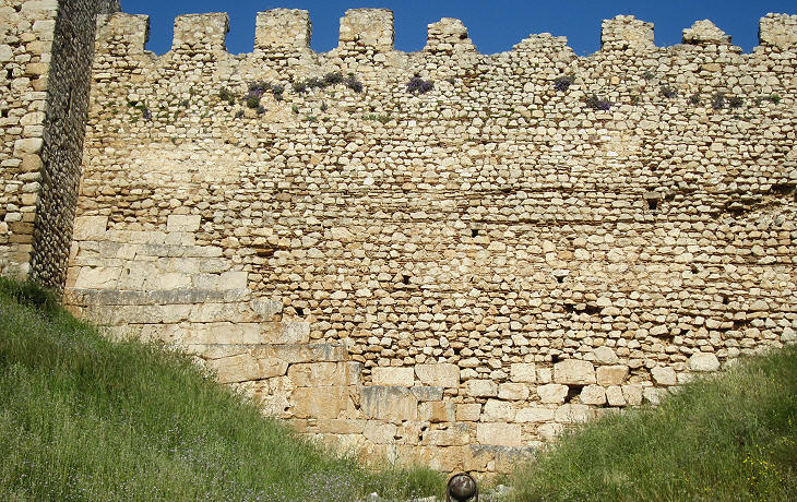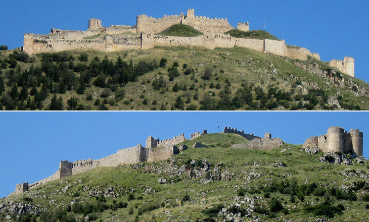 The fortress is composed of the inner castle corresponding to the ancient acropolis and of a large enclosure surrounding it. It is mainly a medieval fortification with many towers of different shape; the northern side of the external walls was strengthened by two massive round towers.