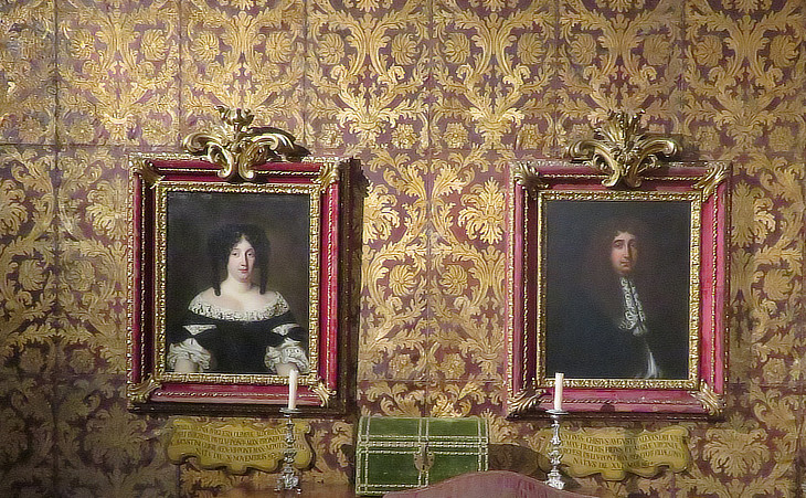 for the Cardinal, were moved to Ariccia after 1693. On the back wall are the portraits of Agostino I and of Maria Virginia Borghese. The paintings are contained in rare frames in carved gilded wood and red satin.