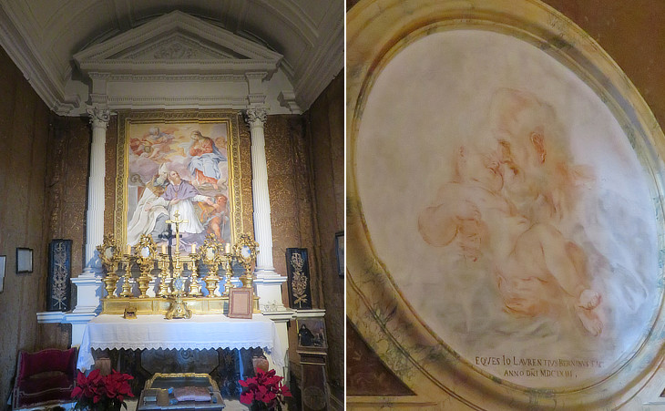 (left) Chapel (with access from Sala Maestra); (right) 1663 sketch by Gian Lorenzo Bernini