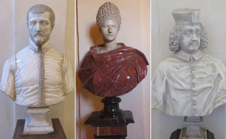 Gallery of busts: (left) Aurelio Chigi (1566-1610) by Tommaso di Bartolomeo Redi, a sculptor from Siena; (centre) Plotina, Emperor Trajan's wife (XVIIth century); (right) Cardinal Flavio Chigi, school of Bernini