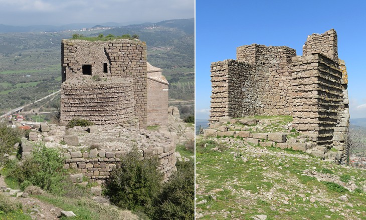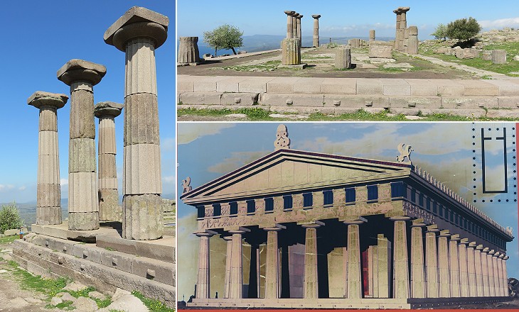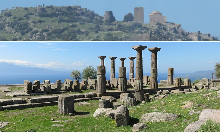 (above) The acropolis seen from the road from Troy; (below) Temple to Athena