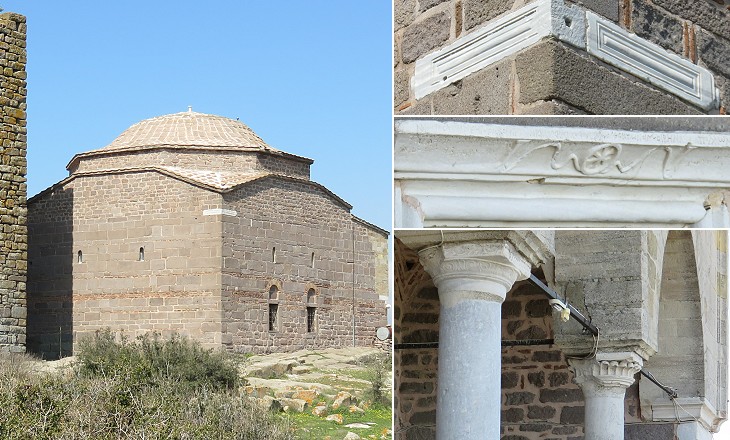 Mosque of Sultan Murad I and details showing the use of marbles from previous buildings