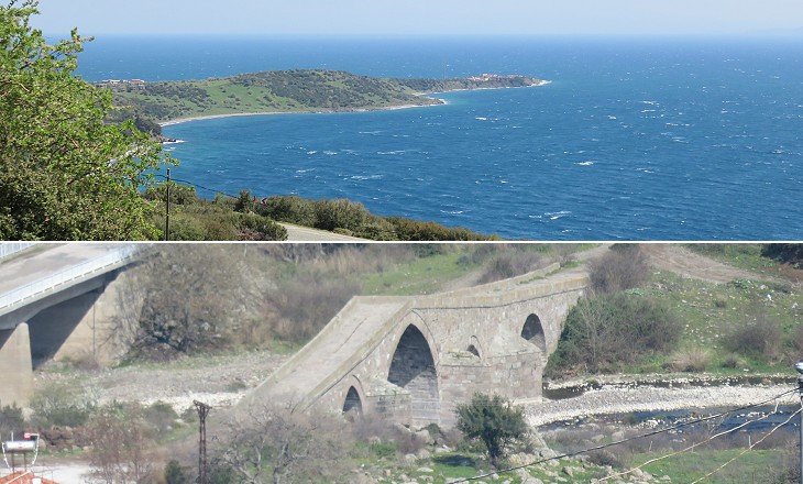 (above) The site of the harbour of Assos; (below) XIVth century bridge on a river near Assos