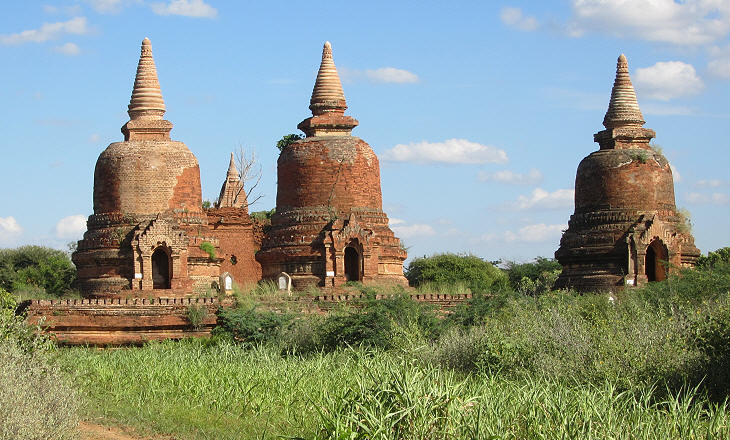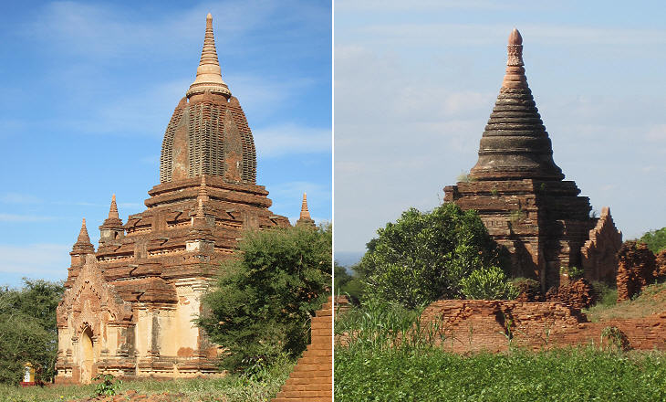 (left) Seinnyet Ama (XIth century); (right) Nandamannya Pagoda (XIIIth century)