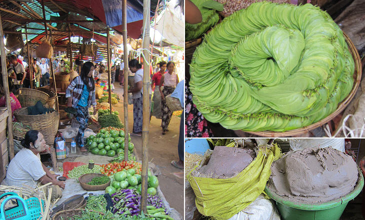 (left) At the market; (right-above) betel leaves