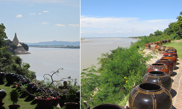 Small pagodas in the compound of a hotel at New Bagan