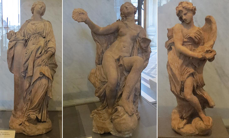 Louvre Museum: Clay models by Gian Lorenzo Bernini: (left) St. Bibiana; (centre) Truth, a statue Bernini made for himself, now at Galleria di Villa Borghese); (right) Angel holding the crown of thorns