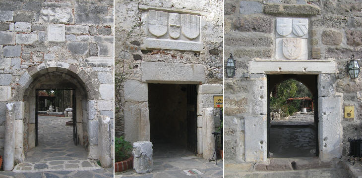 Some of the gates leading to the interior of the fortress bearing the coats of arms of (left) Grand Master Naillac, (centre) Grand Master d'Amboise and (right) Grand Master Orsini in addition to those of the Order and of the fortress commander
