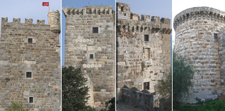 The access to the inner part of the fortress was protected by seven gates, which were built making use of ancient stones; in many parts of the fortress one can see pieces of columns, reliefs, statues which at first were all thought to come from Mausolus' tomb, but which now are assigned to a later period of the history of Halicarnassus.