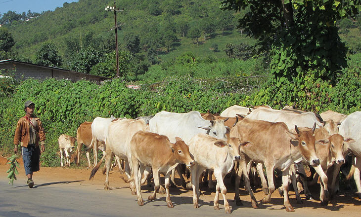 A herdsman on the road to Heho, the airport of the Inle Lake region (a scene of ordinary life)