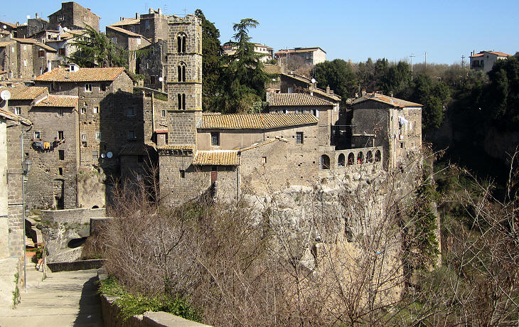 The volcanic rock upon which the medieval part of the town stands is subject to erosion, although to a much lesser extent than Civita di Bagnoregio, another town near Viterbo.