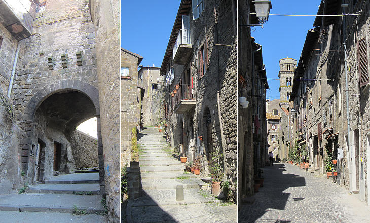 The southern gate of medieval Ronciglione was placed in a hidden position and it was protected by a round tower; the (lost) northern gate at the top of the hill was protected by a small castle; two parallel streets, which have retained most of their medieval appearance, linked the two gates.