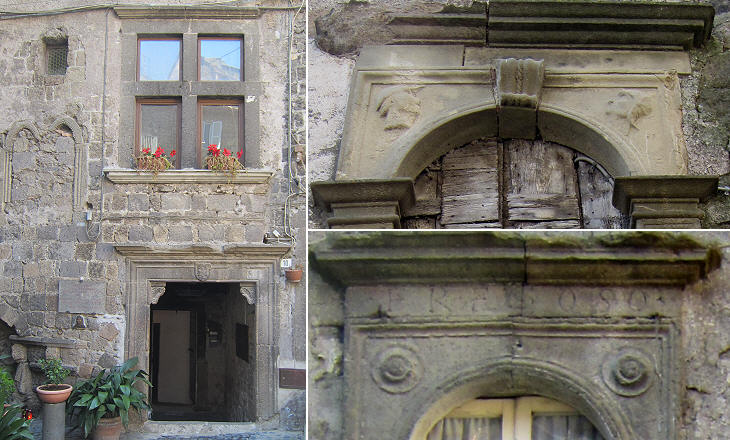 During the XIVth century two families competed for the possession of Ronciglione: the Anguillara, who had many fiefdoms around Lake Bracciano, one of which is still named after them, and the Prefetti di Vico, a family of German origin with fiefdoms in northern Latium from Bolsena to Civitavecchia. The bell tower and the façade are all that is left of a medieval church on the edge of the precipice. The bell tower was redesigned in 1436 and it was embellished with decorated marbles, most likely parts of an old chancel screen.