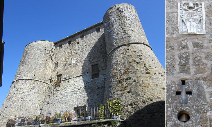 (left) I Torrioni (the Big Towers); (right) a detail showing the coat of arms of Pope Sixtus IV