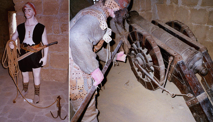 Exhibits of the War Museum: (left) Ottoman assailant; (right) Venetian soldier and an old cannon