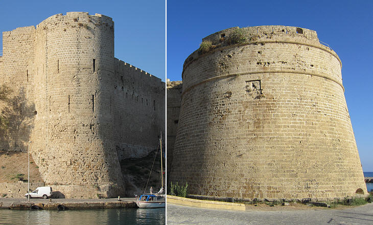 The fortress: (left) Lusignan Tower; (right) south-eastern bastion (on the side of the ancient harbour)