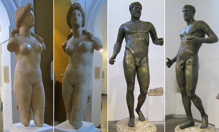 Statues showing Hellenistic and Roman influence at the National Archaeological Museum of Nicosia: (left) Aphrodite (Ist century BC) found at Soloi, in the north-western part of the island; (right) Emperor Septimius Severus (late IInd Century AD) found at Kythrea, near Nicosia
