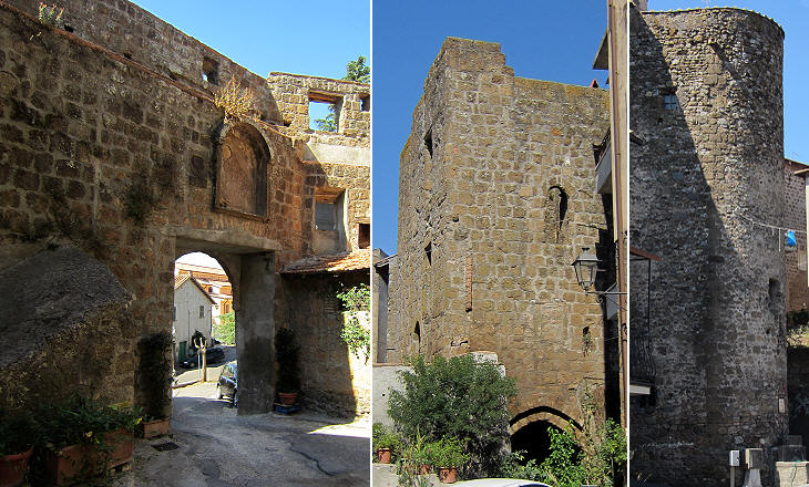 The soft volcanic soil of northern Latium is cut by ravines made by small rivers. The origin of Barbarano goes back to the XIth century when the inhabitants of Marturanum, a Roman town along Via Clodia, relocated to a small terrace at the junction of two deep ravines which provided a natural defence. For this reason the walls of the town are very short, something which can be seen at other locations such as Vitorchiano. The walls had square towers, some of which were replaced by round towers in the late XVth century (the clock at the top of the main tower is a XIXth century addition).