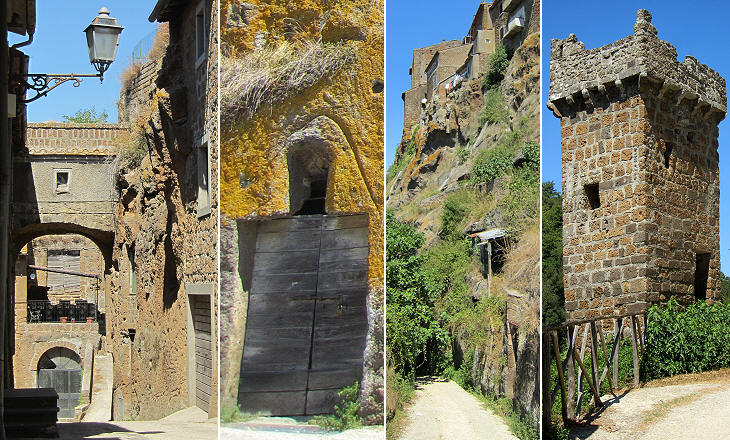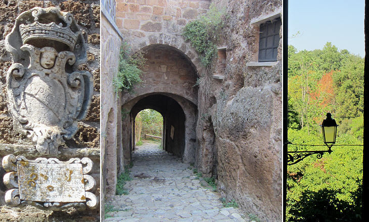 (centre) Porta del Canale; (right) view from one of the narrow alleys departing from the main road
