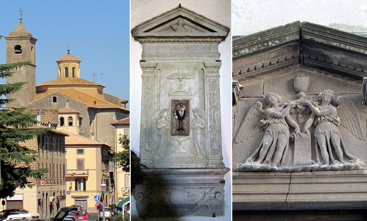 (left) S. Andrea; (centre) tabernacle containing the Chrism (holy anointing oil) in SS. Filippo e Giacomo (see a very similar one at nearby Capranica); (right) Oratorio del SS. Sacramento