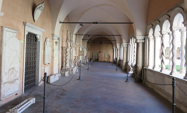 The items on display in the cloister are not a "must see", but they stimulate thoughts on the history and art of Rome. In the portico are several objects that belonged to the ancient church, such as altars, columns, the Pontifical chair, ornaments in mosaic etc., which are usually pointed out by the Custode (warden), to the curiosity of the stranger.