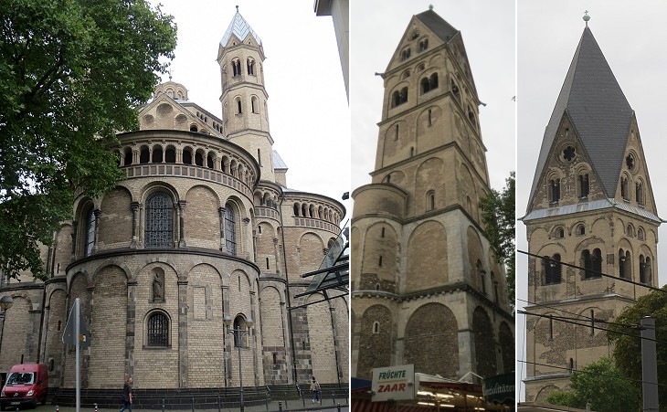 Apostelkirche: (left) apse (you may wish to see that of St. Sernin at Toulouse); (right) western tower