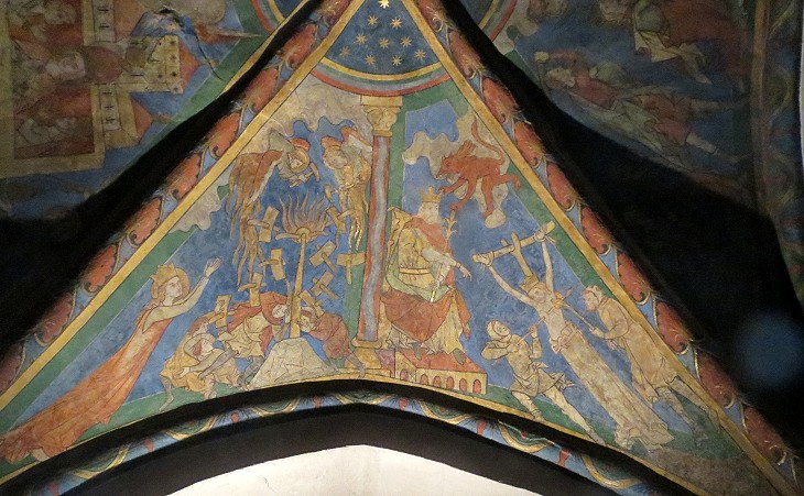 St. Maria Lyskirchen: fresco of the ceiling of St. Catherine's Chapel depicting the martyrdom of the saint: (left) angels destroy the wheel she was tied to; (right) her breasts are pierced