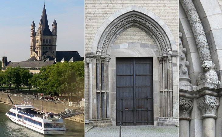 (left) Gross St. Martin from the bridge leading to Deutz; (right) reconstructed portal